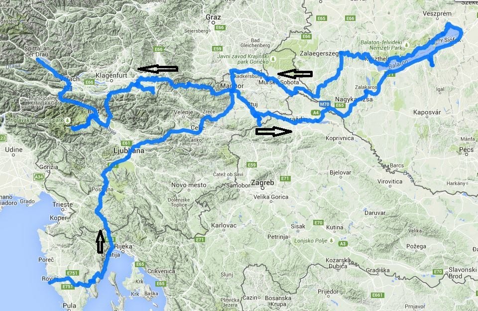 After taking the ferry from Venice to Croatia, we headed NE through Slovenia, then east to Hungary before looping back west again into the Slovenian Alps.