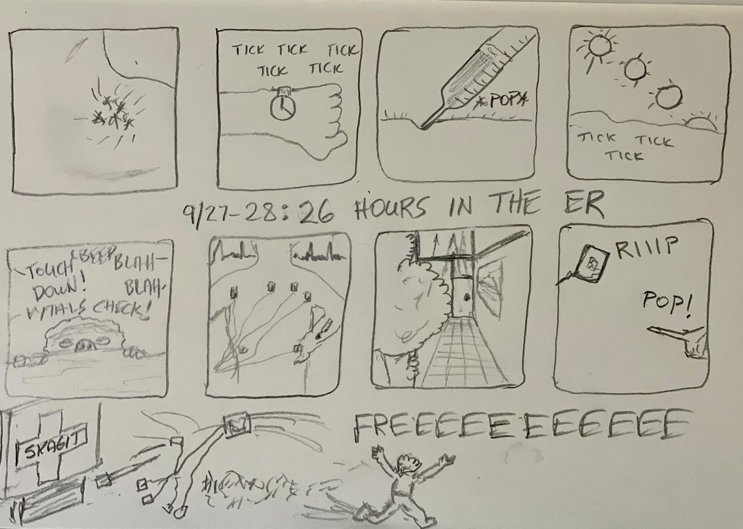 We don’t draw every day—sick kids for Eric or a trip for one of us might derail things. Eric has sent many drawings after midnight, whereas my willpower is exhausted around 11 p.m. (Similar to when we worked late on college projects.) Still, most days of the month, we’re sketching a memory from the day and sharing it with one another.