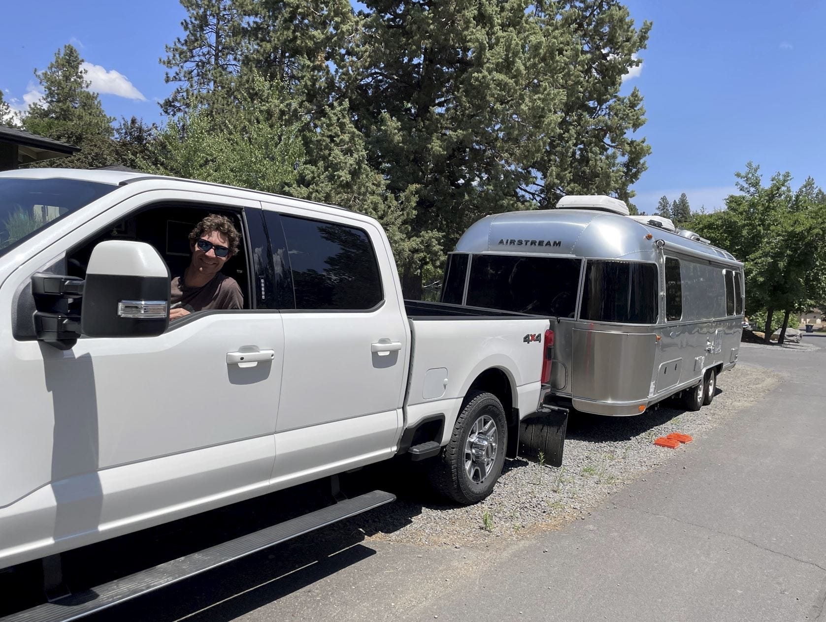 The trailer is a 2017 Flying Cloud Airstream, the 27’ FBT (front bed twin). It’s in fabulous shape because the previous owner never used it and the one before that was afraid of towing. Gosh, why?
