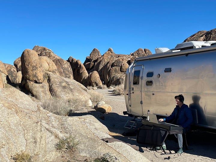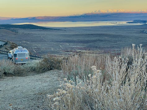 For the past week, Chelsea and I have woken up in the silver embrace of our Airstream. I’m typing this from the Alabama Hills, land of giant boulders scattered at the foot of the snow-capped Sierras in California.